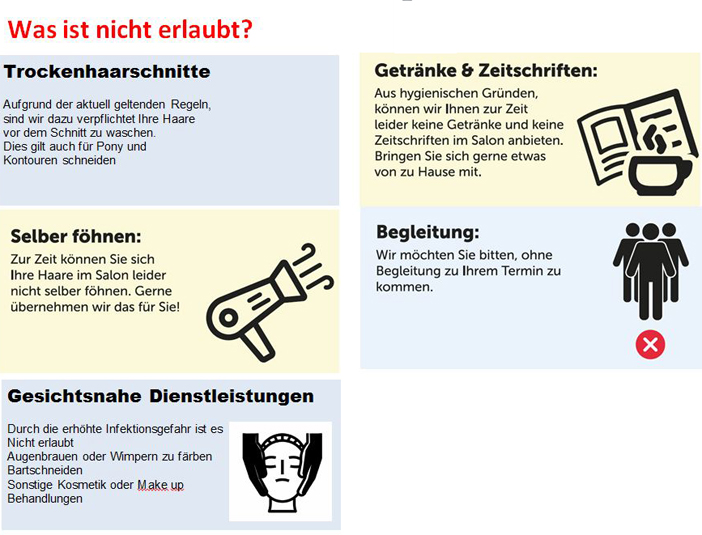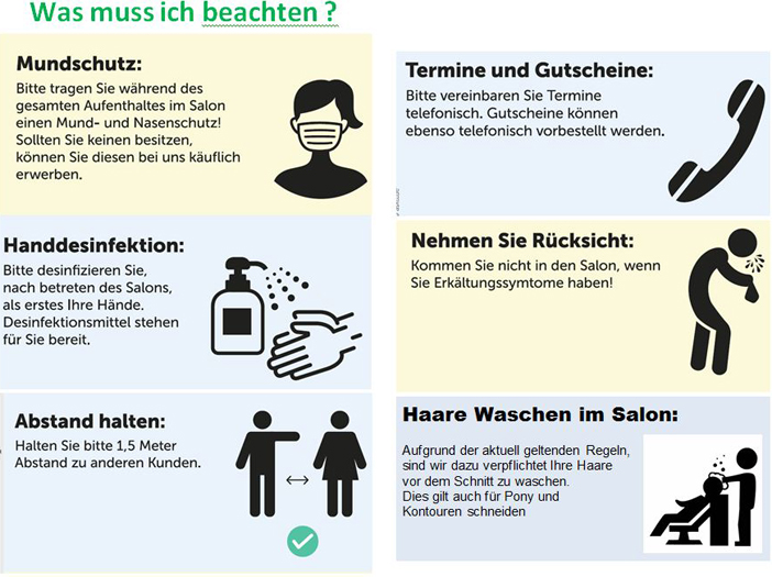 Öffnungszeiten (Corona) Hallo liebe Kunden, Wie Sie wissen, dürfen die Friseure ab dem 4.5.2020 wieder öffnen, d.h. dass wir Termine ab dem 2.5. telefonisch vergeben. |